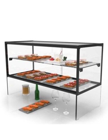 - Effet suspendu unique : la base en verre trempé surélève la vitrine et préserve 260 mm d'espace comptoir utilisable par le client