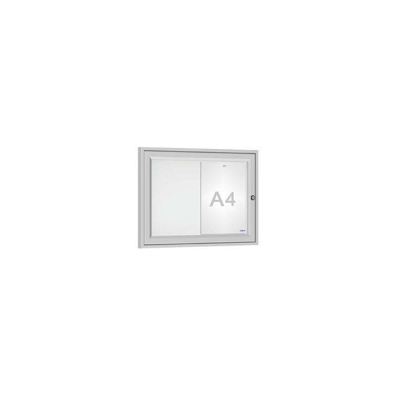 - Poids : 4 Kg - Disponibilité : En stock - Caractéristiques techniques : - Taille de l'affichage : 2 à 9 A4 - Épaisseur : 18 mm - Vitrage : Plexi - rigide® épaisseur 3 mm - Porte : porte battante, 1 ou 2 serrures (2 clés par serrure) - Cadre : aluminium anodisé argent - Fond : magnÃ