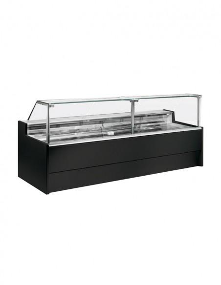 Îlot réfrigéré avec 2 étagères - Caractéristiques du bac réfrigéré libre - service : - Produit de qualité fabriqué en Europe - isolation de qualité 40 kg/ m³ supérieure en polyuréthane - Capacité :180 litres - Couleur: noir - 2 Tablettes - Barre de protection en acier