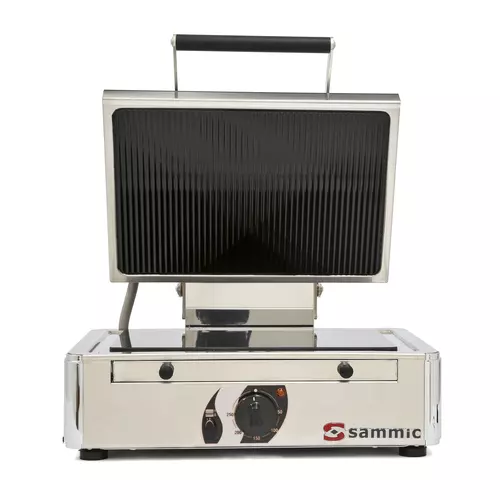 Le Vetrogrill Sammic GV - 6LA allie rapidité, ergonomie et hygiène grâce à des surfaces en vitrocéramique qui permettent une cuisson directe. La configuration LL offre une plaque inférieure et supérieure lisse pour des résultats polyvalents.Structure en inox avec un dosseret arrière facile