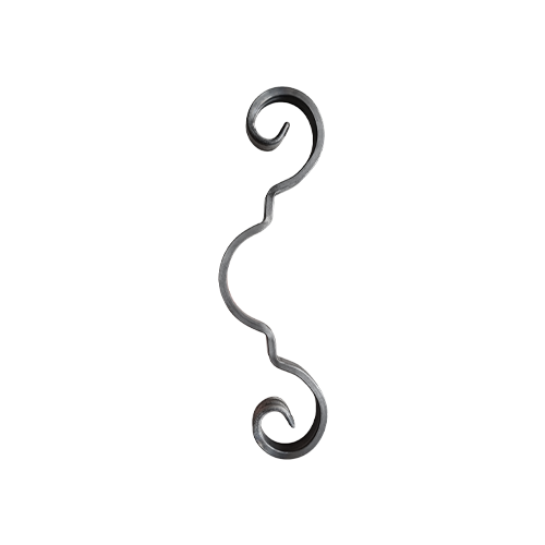 Volute en fer plat de 16 mm de large sur 4 mm d'épaisseur en forme de "S" de 360 mm de haut sur 125 mm de large. - Les volutes sont généralement associées à d'autres produits en acier tels que des laminés carrés, ronds, plats ou encore à d'autres fers forgés afin de créer des combinaisons