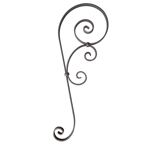 Volute en fer plat de 20 mm de large sur 6mm d'épaisseur combinant une volute en forme de "S" et une volute en forme de "U". Le tout mesure 730mm de haut sur 250mm de large.