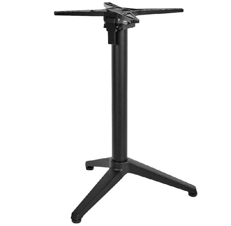 Piètement table de restaurant Ugine Noir en aluminium. Système de rabattage du plateau. Deux tampons réglables en hauteur. Utilisation intérieure et extérieure. Livré démonté. Compatible avec tous nos plateaux de table 60x60cm, 70x70cm et Ø60cm - UGINE PIETEMENT SIMPLE RABATTABLE NOIR - R