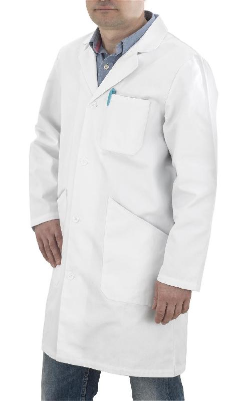Blouse blanche - Tissu : 100 % coton, 190 g/m² - Caractéristiques : - Modèle mixte - Fermeture par boutons en plastique - Manches longues - Col tailleur - 3 poches : 2 poches basses et 1 poche poitrine - Accessoire fourni : Livrée avec un cintre - Utilisation : Blouse multiusage