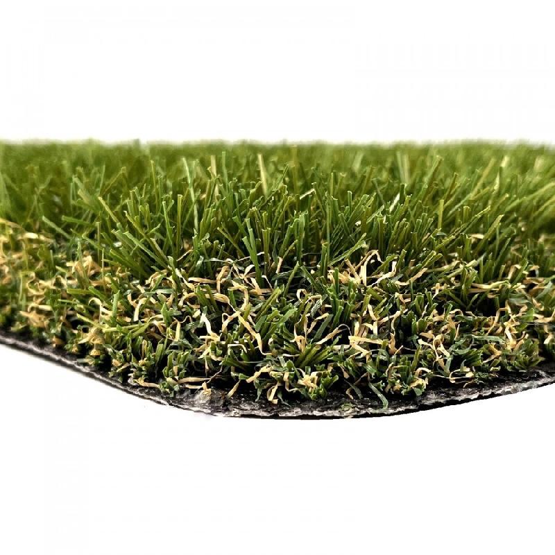 Gazon synthétique pour l'extérieur fabriqué en Europe et disponible immédiatement en 2 largeurs et coupe au mètre linéaire près (25 longueurs). - Caractéristiques : - résilient (résistance au passage) - douceur - confortable (hauteur de fibre 21mm) - dense - conforme réglementations