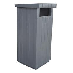 Corbeille en plastique recyclé - DELTA"Le mobilier urbain utile et responsable"Caractéristiques : - Corbeille classique 130 litres avec ou sans couvercle (noir) - Dimensions : 49 x 49 x 80 (ht) cm - Support sac élastique intérieur - Poids : 43 kg (couvercle : 2 kg) - Autostable ou à fixer